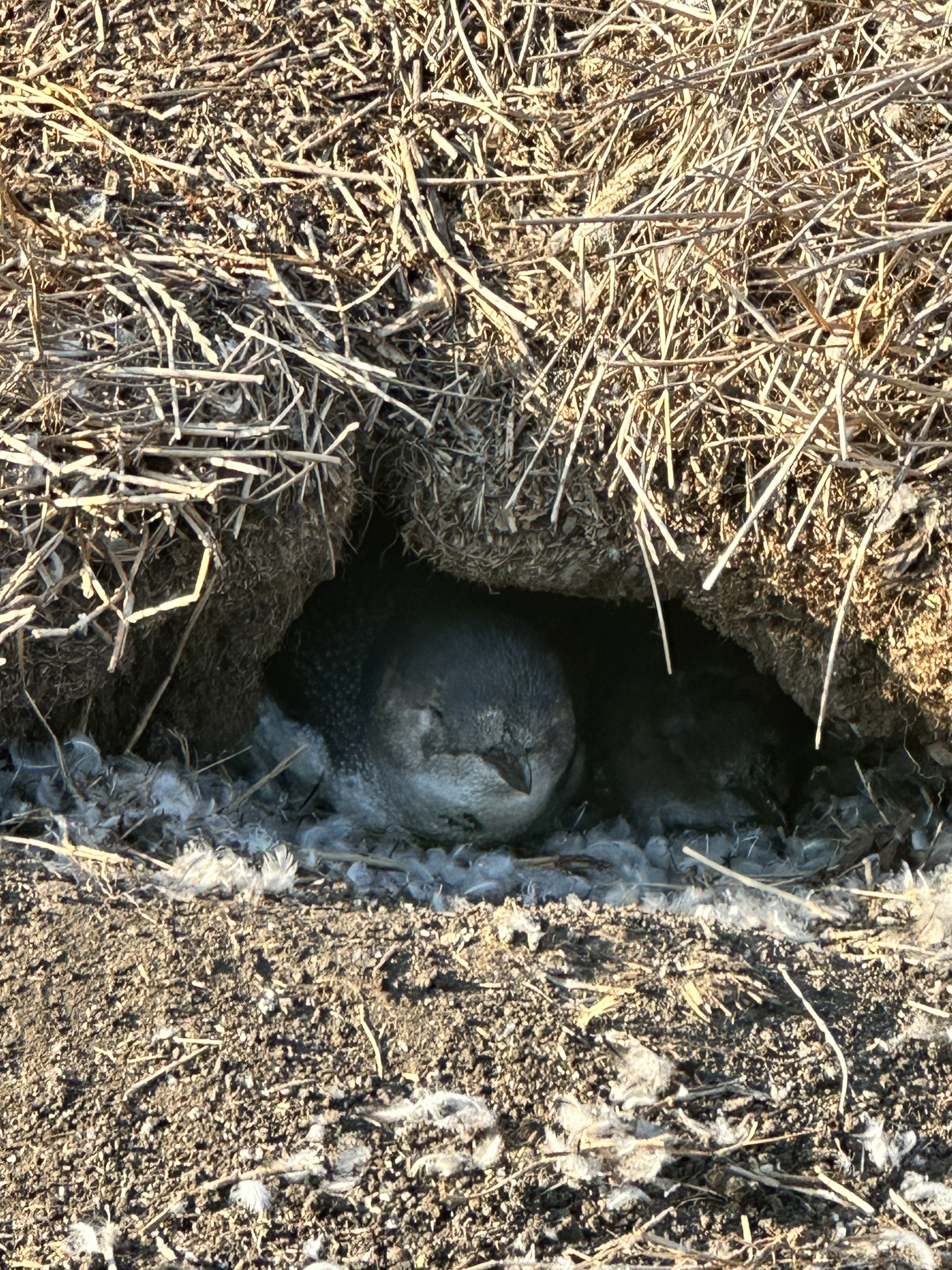 We paid for an upgrade on this tour for seats in the premium viewing spot. Once sunset came we were not permitted to take any photos of the penguins because it can affect their sensitive eyes. You are seated before sunset and await their arrival from the ocean. The crowd is abuzz as their arrival comes, they waddle from the surf in groups in range of 30-40, they slowly get to a high spot on the sand on the beach, they all stop and look around in every possible direction, checking to make sure no predators are nearby. When they feel the coast is clear, which could be 5-10-15-20mins, they start scampering, or sauntering in some cases, off the beach towards the hills and grassy knolls where their burrows are located. Some burrows are clearly visible nearby where we were seated and their mates are standing outside in our clear view, but others can be as far as 2km away from the beach! They were absolutely precious. We could see them as they were coming out of the ocean and up from the beach and some waddling along a path that comes right underneath and alongside the stands you are sitting on, such that we could have reached down and touched some of them. Their mates would be outside the burrows waiting for them, making squeaky noises to alert partner where they were.